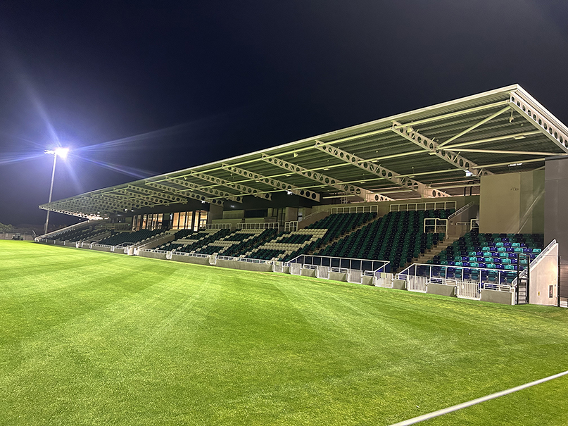 It is unusual to find a sportsground which has been retained within an urban fabric and re-developed to provide a 3,000-seat stand, together with the usual ancillary and support accommodation for athletes and hospitality and corporate facilities. In addition to the construction of the grandstand, the project encompassed a new sand-based grass pitch, floodlighting, a new entranceway and turnstiles and the boundary enclosures.