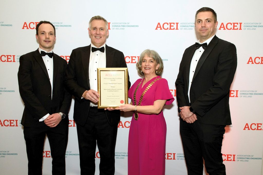 To celebrate this year’s shortlisted projects, a gala dinner and awards ceremony was held on Friday, 28 March at the InterContinental Hotel in Dublin 4. ACEI President 2024-2025 Anne Marie Conibear presented certificates to the award winners, marking another successful year for the association.