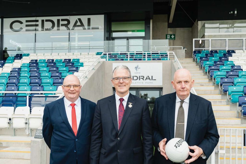 As John Bradley thanked the Cedral and Kildare GAA teams for the work and commitment involved in the redevelopment of the stadium, he reflected on the sponsorship. He said, “At Etex Ireland, we live by our core values—connect and care, pioneer to lead and passion for excellence. These values guide everything we do, and they’re at the heart of this sponsorship. Cedral St. Conleth’s Park is more than just a stadium; it’s a place where community, sport, and tradition come together. And we are thrilled to play a role in its redevelopment, helping to create a space that will inspire future generations of athletes, fans, and local supporters.”