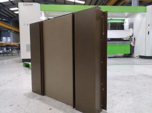 Spanwall created digital twins of every component for the cladding package. This allowed the design to be validated digitally before proceeding into manufacture and facilitated online simulation of the metal folding process. Spanwall was then able to pre-configure all connection points for the individual cladding components to ensure seamless final assembly in the factory once every part had been manufactured and painted.