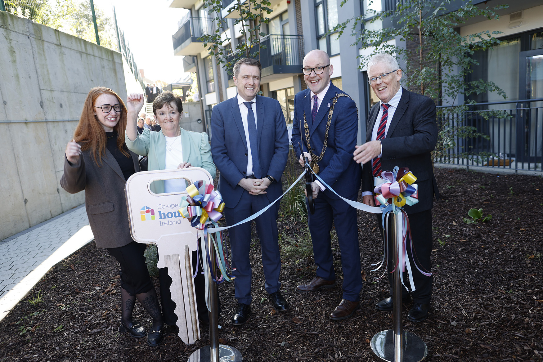 Co-operative Housing Ireland, an Approved Housing Body, officially opened 79 new energy-efficient A-rated apartments at Brookfield Heights, Kilmainham, Dublin 8. The homes were launched by the Lord Mayor of Dublin, Councillor Ray McAdam, together with the Minister for Housing, Local Government and Heritage, James Browne TD, Member Tenants (residents) and project partners.