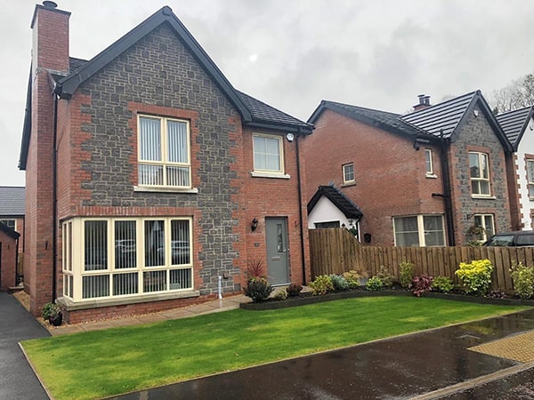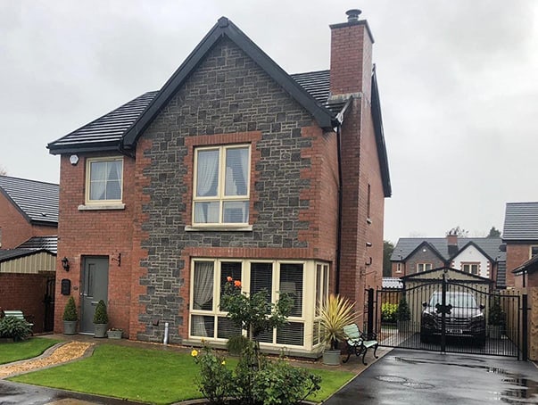 A brand new development by Simpson Developments Ltd in Cullybackey, Ballymena using our Martello Stone Walling in Kilkenny Limestone.