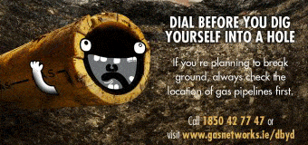 “Responsible contractors want to make sure that they operate a safe site. We would urge all contractors to ‘Dial Before You Dig’; just pick up the phone or use our online service to avoid causing any damage or disruption to gas pipes, or worse still, injury to people,” Mr O’Brien said.