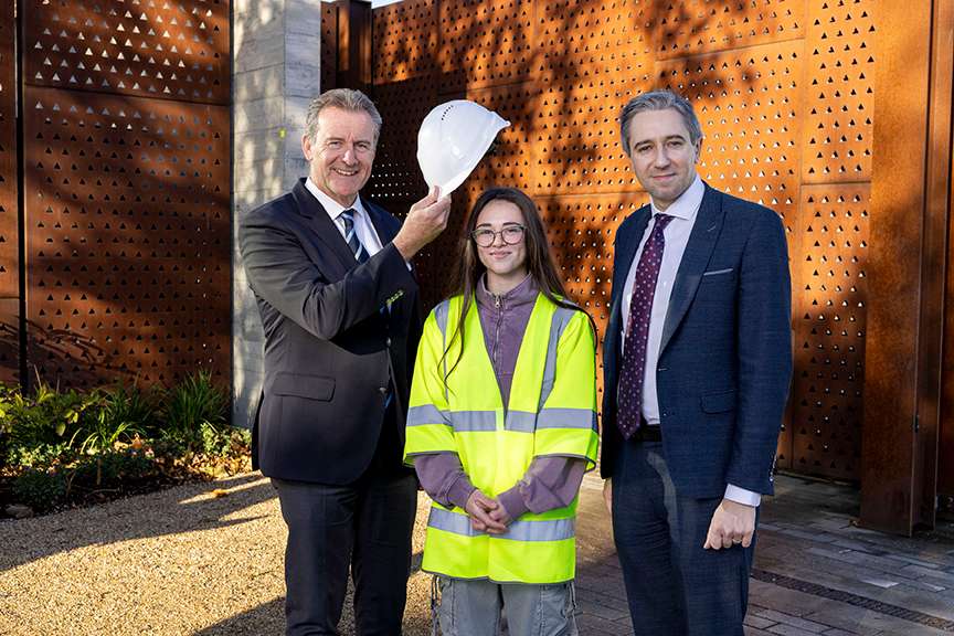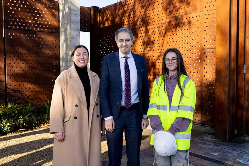 Minister for Further and Higher Education Simon Harris TD alongside Megan Pepper, graduate of the Dublin Port-based Construction Skills course, and Edel Currie, Community Engagement Manager at Dublin Port Company, celebrate the course crossing a milestone of 1,000 graduates since its inception in 2017. The three-week course, which is ran by St Andrew’s Resource Centre in partnership with Inner City Renewal Group, is focused on helping unemployed upskill quickly and find gainful employment in the construction industry.