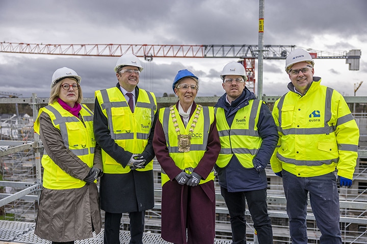 Evara’s announcement was made as Mayor of South Dublin, Councillor Pamela Kearns, and Minister for Housing, Local Government and Heritage James Browne TD attended a topping out ceremony at St Helen’s Plaza to mark the reaching of roof level by the construction team.