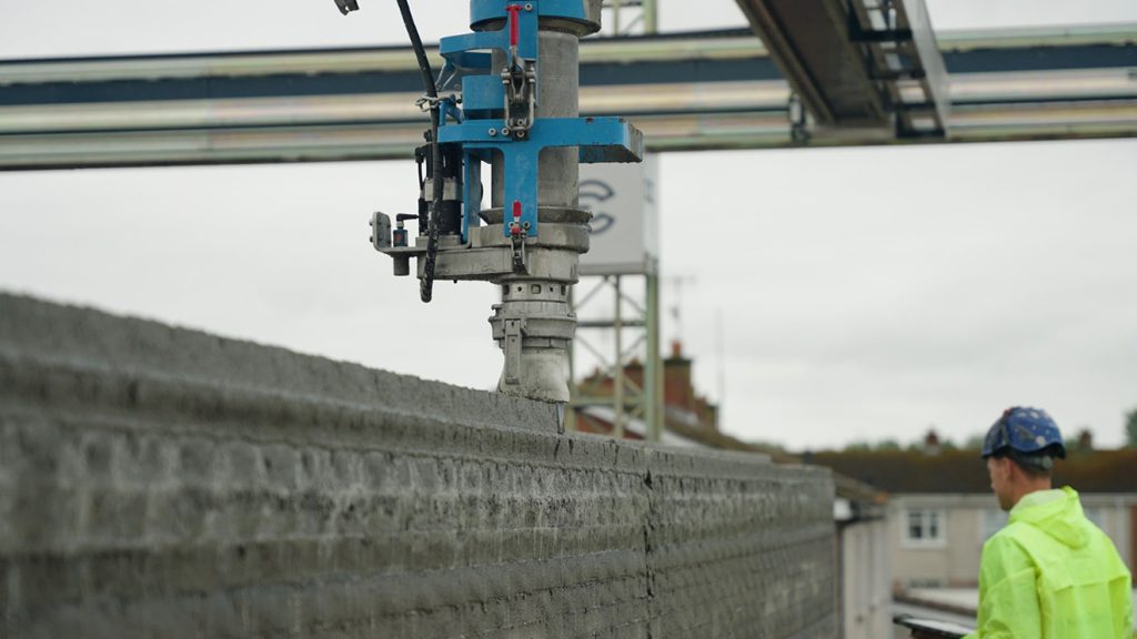 The walls of the Grange Close project were printed using the BOD2 3D Construction Printer in only 12 printing days. Including setup and takedown of the printer and scaffolding, the entire structure was completed in 18 days. This is almost 1 month faster than if conventional methods of construction had been used.
