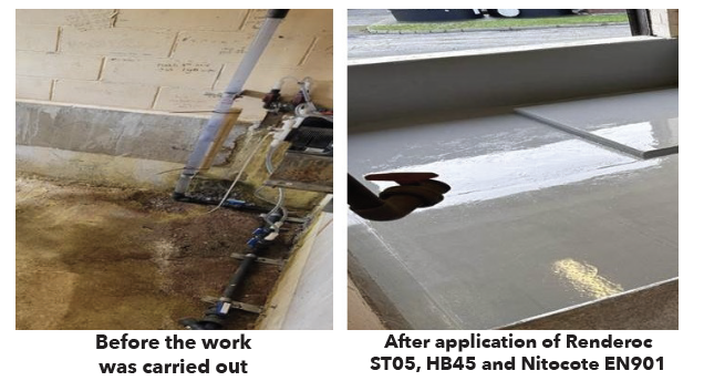 Renderoc ST05 was used for the infilling of blowholes, with Renderoc HB45 hand applied for a smooth finish. The final step was the application of protective coating Nitocote EN901 to create a barrier layer.