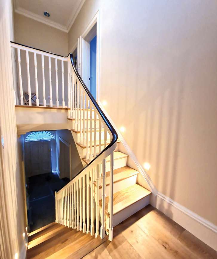 The work required to restore the staircase was extensive. Repair work had to be undertaken on the strings, treads and risers and replaced where necessary. The handrail had to be carefully repaired with some sections needing replacement to ensure user safety.