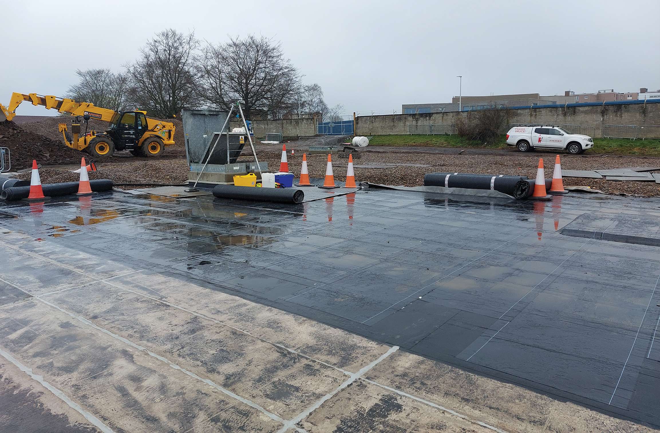 Gowriehill Distribution Service Reservoir is located in Dundee City and managed by Scottish Water. In late 2021, part of the reservoir tank construction was discovered to have a brittle asphalt waterproofing layer over the top of a beam and block roof. Scottish Water commissioned Mackenzie Construction, who in turn commissioned specialist contractor Fraser Bruce Group to resolve the issue.