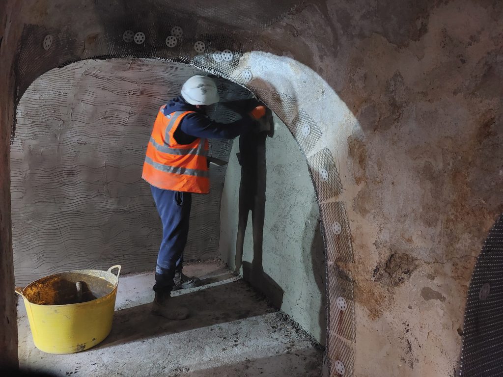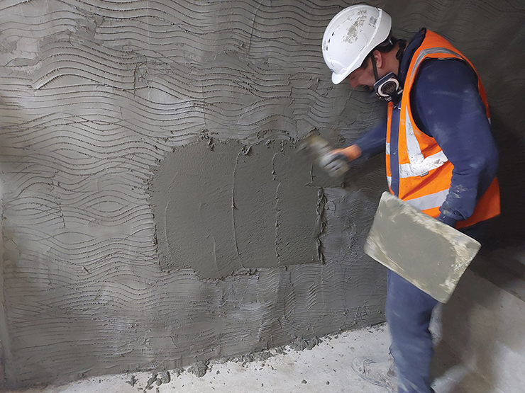 It is a ‘Type A’ internal waterproofing solution for new and existing below-ground structures, ideal for the refurbishment of lift pits, basement areas and tunnels. It can be used to support a ‘Type C’ waterproofing solution where the basement or wine cellars of large houses are being repurposed – for example, a cinema room. The render should be applied over Proofex WR Primer mixed with anti-slip grains/sand. The Proofex WR Primer can be used directly on brickwork, blockwork, concrete and most types of masonry prior to the application of the Render, or to provide a surface suitable for the application of Proofex 3000/3000MR.