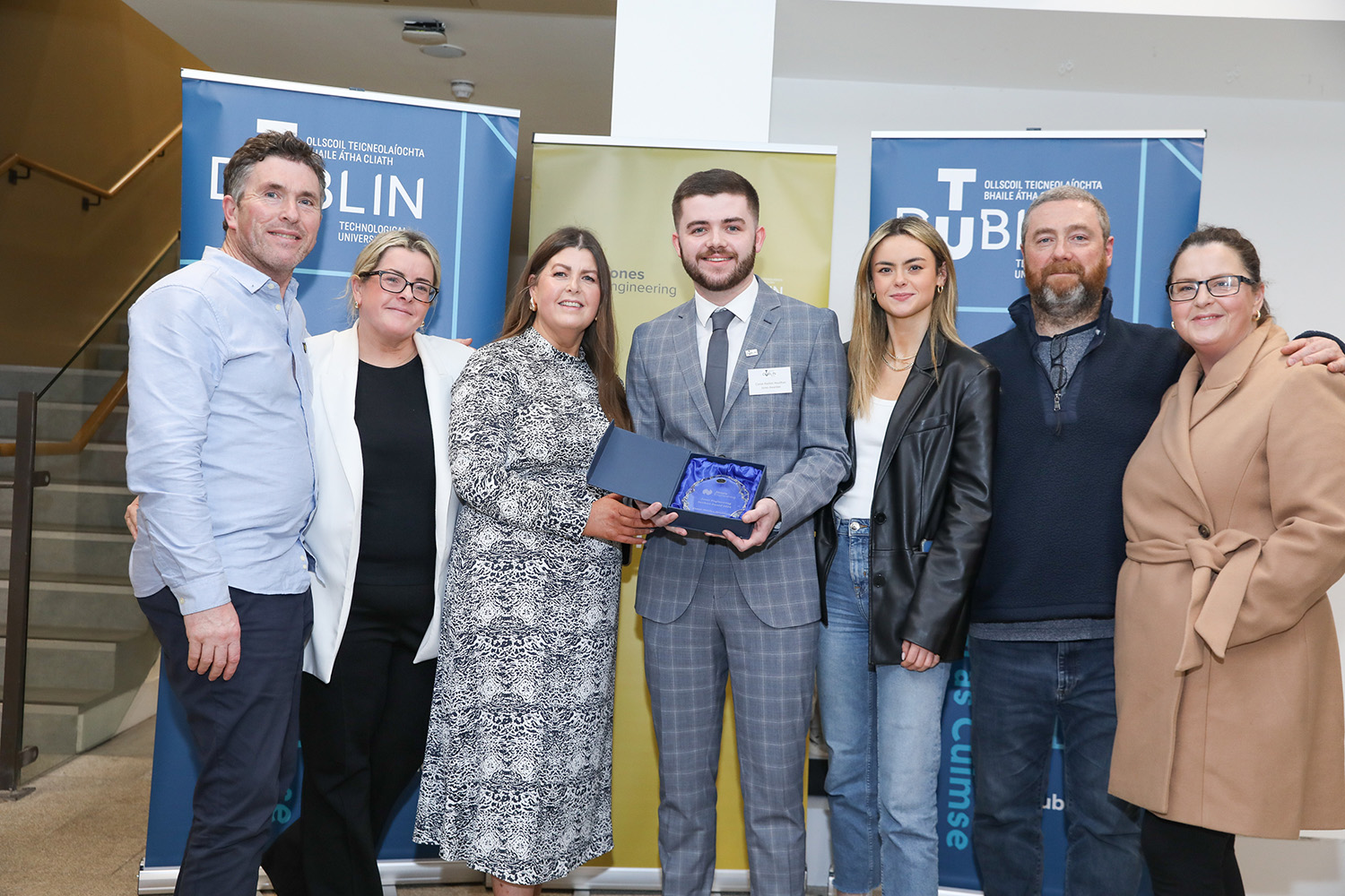 Conor Hanlon Houlihan and his family. He is one of last years recipients of the award. He subsequently joined Jones as a Graduate Electrical Engineer. He will speak to the recipients at tonight’s award ceremony.