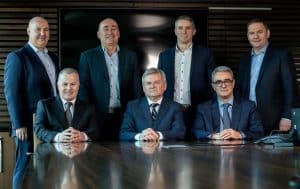 (L-R) Back: Robbie Irvin (Director), Shane Gillece (Group Director) Paul Nicholls (Director), Stephen Anderson (Director), Front: Stephen McCabe (Group Director), Jim Curley (CEO), John King (Group Finance Director and Company Secretary)