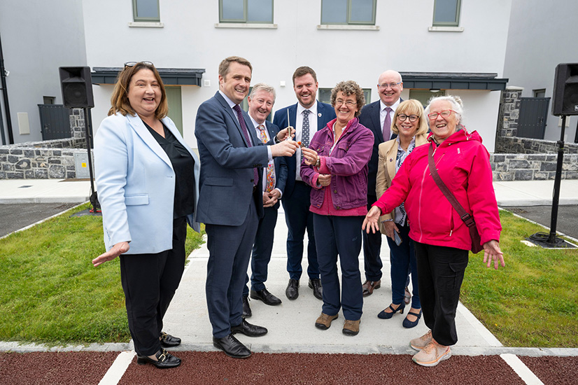 In Ardrahan, the Minister officially opened a 10-unit social housing scheme at Caisleán Raithin which was funded with €3.3m from the Department’s Social Housing Investment Programme (SHIP). The Council-led development, located within walking distance of the village centre, includes a mix of single-storey and two-storey homes, designed by OBFA Architects and built by Jada Construction. The Minister today handed over the keys to tenants of the new homes.