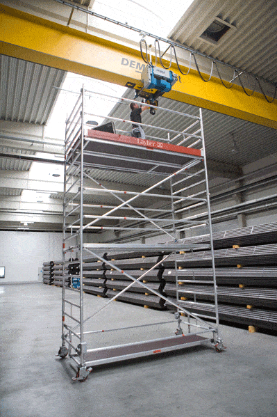 Also offered are the Uni Wide and Uni Standard (Double and Single Width) Towers which can provide more height and working area. The Uni Standard is ideal for use for work on walls and ceilings during maintenance and construction in technical facilities, high tech manufacturing locations, data centres, factories and warehouses, both inside and outside. The system offers working heights of 13m on a platform of 0.75m by 2.85m with live loads of 2kN/m2 (Scaffolding Group 3).