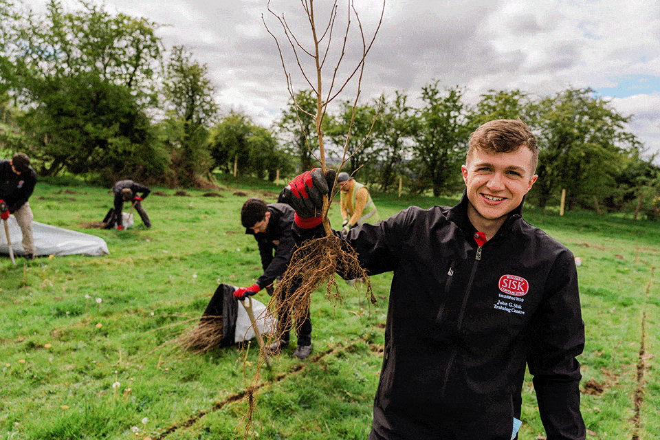 John Sisk & Son’s new cohort of carpentry & joinery apprentices has completed one of Sisk’s first tree planting exercises as part its commitment to planting 1.7 million native woodland trees over the next nine years. Sisk’s new group of apprentices got stuck into help plant the trees near Manor Kilbride in Co. Wicklow.